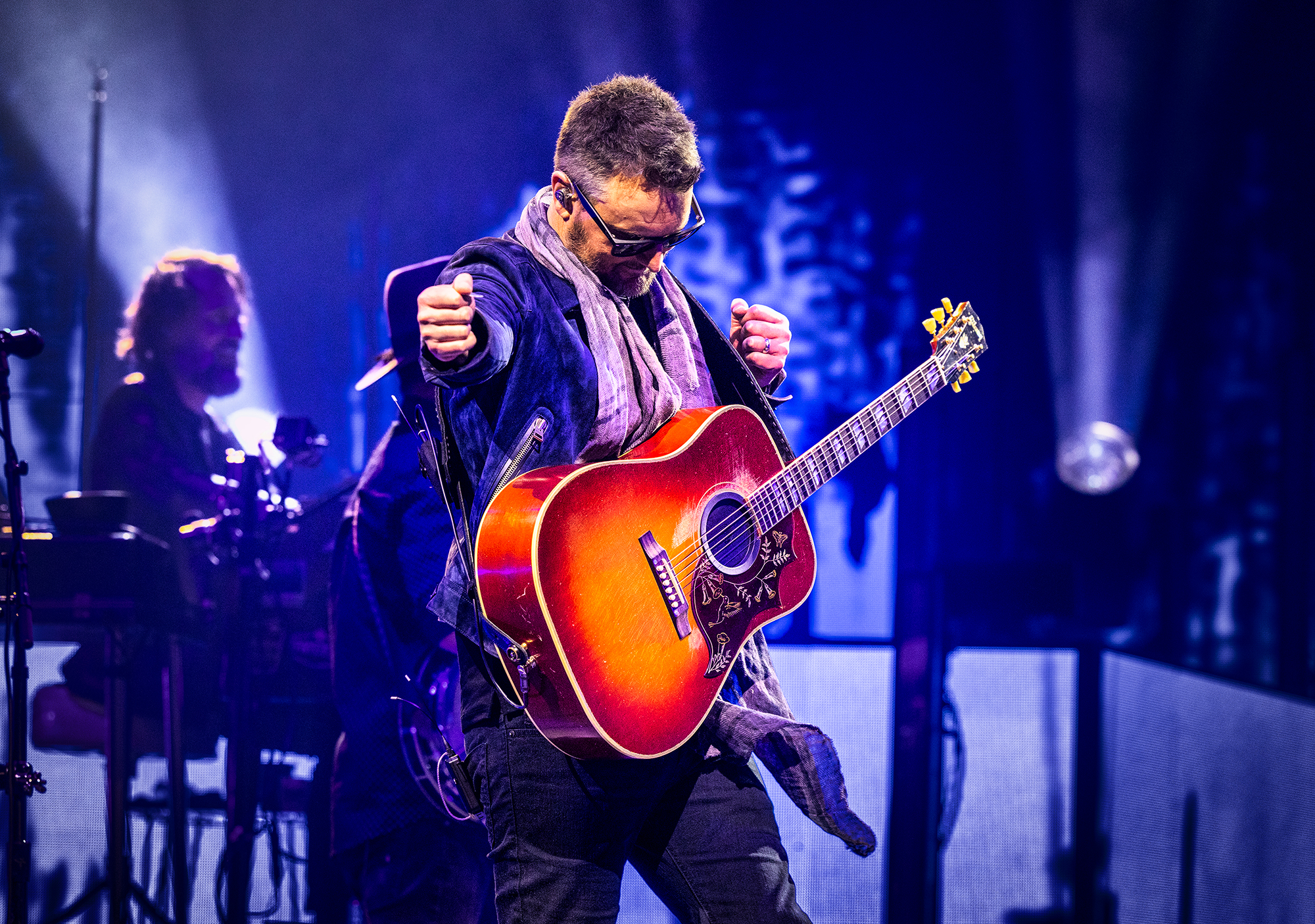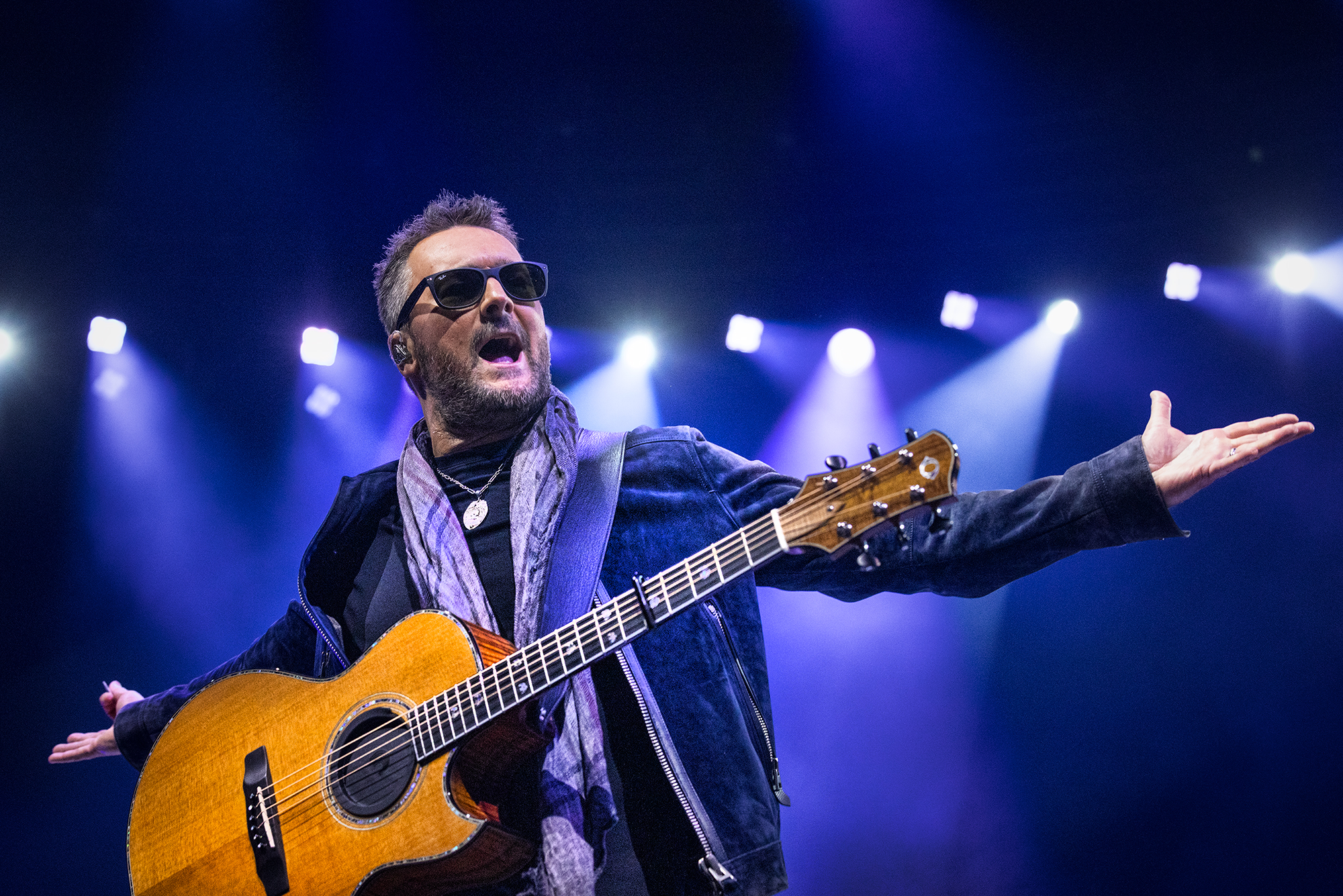 He even tweaked the words just a little for the occasion, making sure everyone understood that the guy up there on the stage wearing the Ray-Bans had just as much fun on this rocking Saturday night as they did.